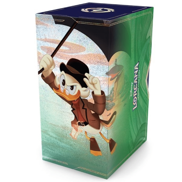 The Scrooge McDuck Gift Box will be available on March 13, 2026 for $29.99. The sturdy storage box contains 5 booster packs randomly selected from previous sets, and also including a Scrooge McDuck – S.H.U.S.H. Agent promo card with a glimmer foil finish! You can keep 250 sleeved cards protected in the storage box.