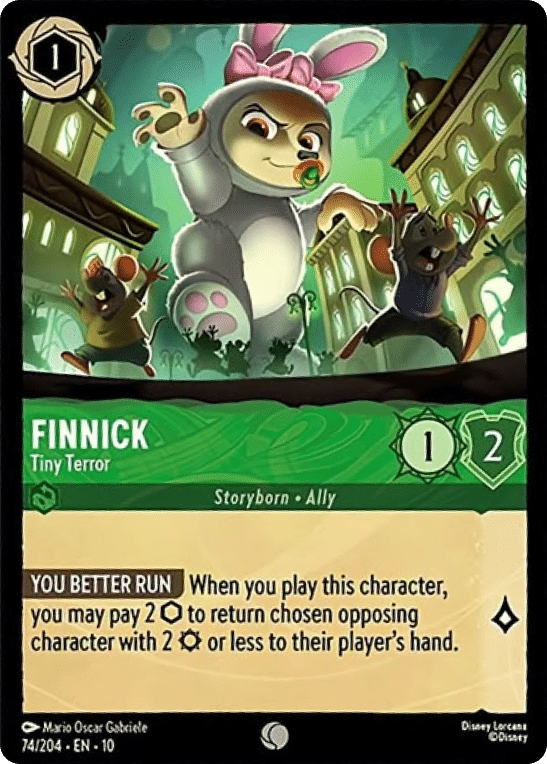 YOU BETTER RUN: When you play this character, you may pay 2 to return chosen opposing character with 2 Strength or less to their player’s hand.