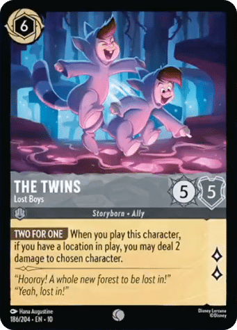 TWO FOR ONE: When you play this character, if you have a location in play, you may deal 2 damage to chosen character.