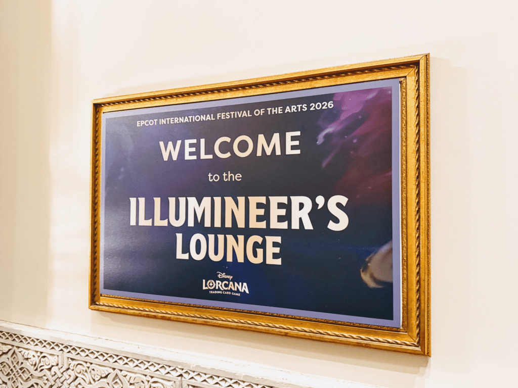 Epcot Festival of the Arts features the newly opened Illumineer’s Lounge where you can participate in some fun Lorcana activities like the Collection Quest and Ink & Find Scavenger Hunt!