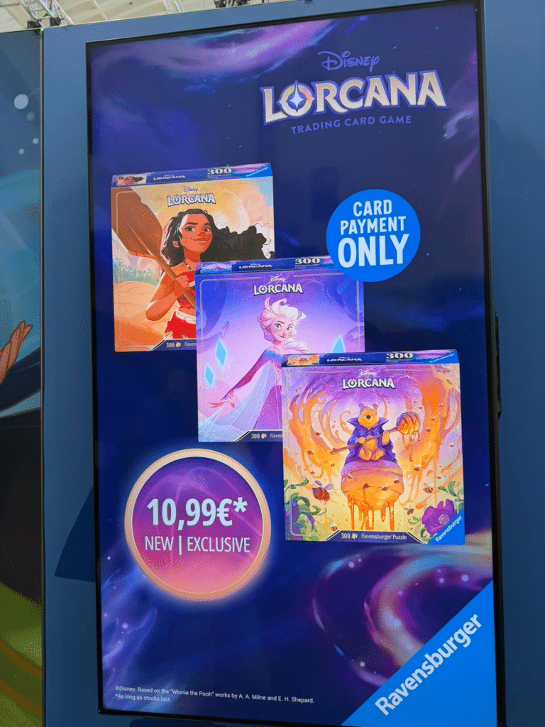 We spotted this at the Disney Lorcana booth at the Essen Spiel event. Moana, Elsa, and Pooh are getting their own jigsaw puzzles added to the series.