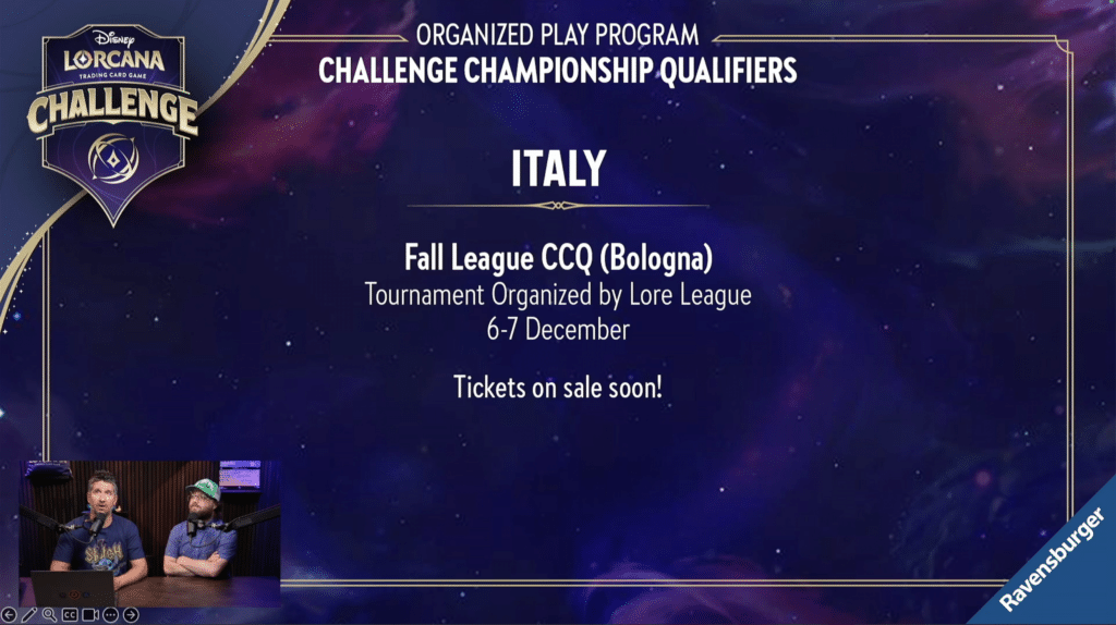 Barcelona and Italy will be getting CCQs this season! Hosted by Victory Road and Lore League Respectively.